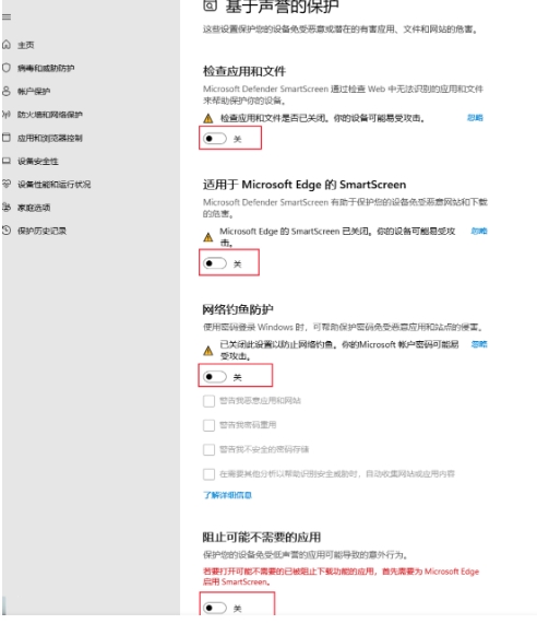 3.第三步:关闭所有Microsoft Defender SmartScreen的检查项