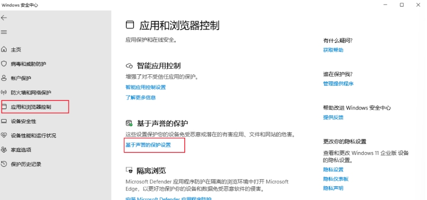2.第二步:应用和浏览器控制--->基于声誉的保护设置